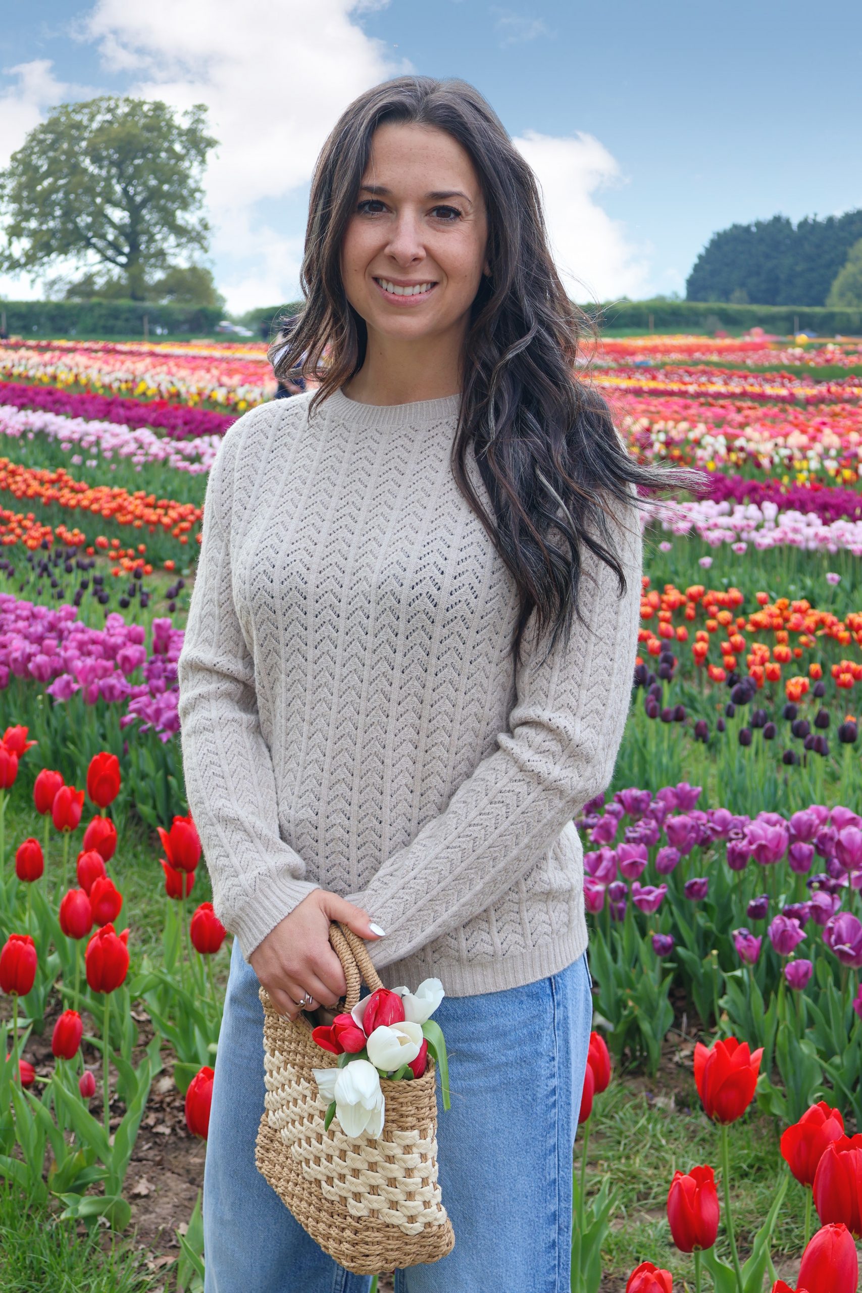 Introducing the Hanna Chevron Knit. Featuring a round neckline with ribbed hem and cuffs. Crafted with a chevron stitch detailing and slightly fitted style, pair with jeans and trainers for an easy go-to look.