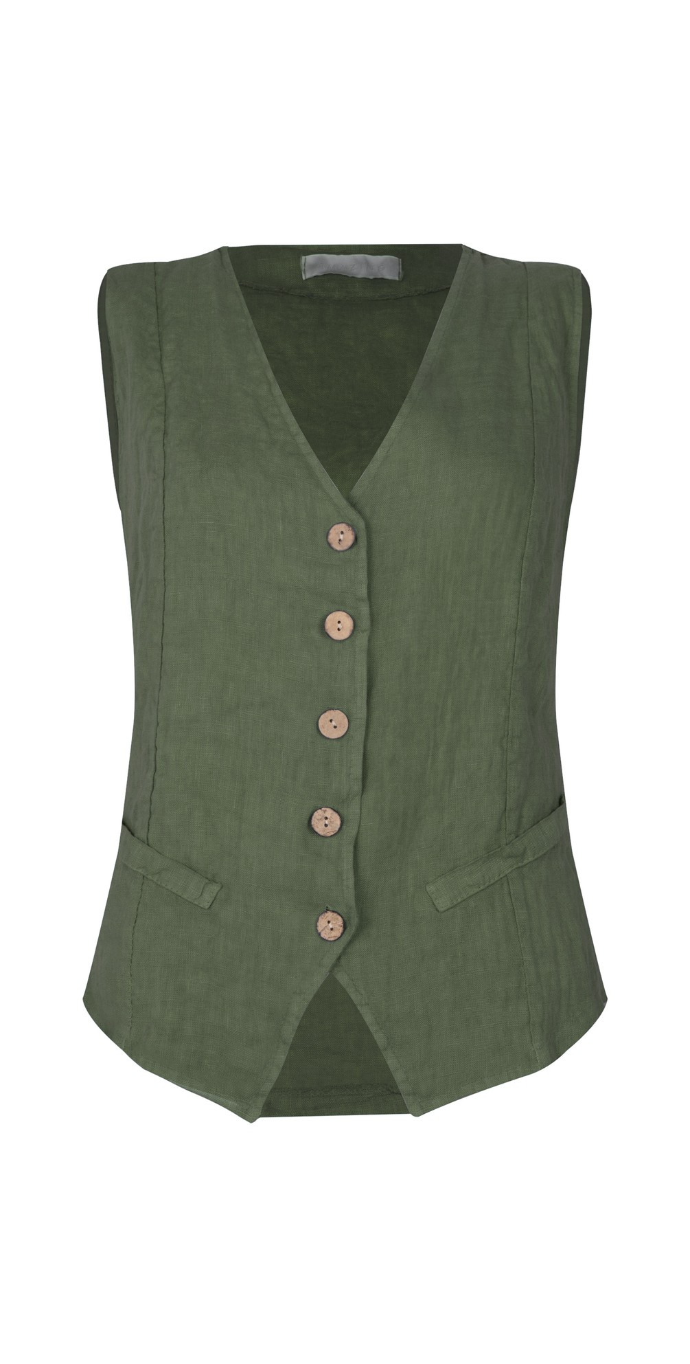 The new Kitty Linen Waistcoat from Amazing Woman is a chic linen waistcoat top with a back tie detail that allows you to nip in the fabric to create your perfect fit. Finished with a pointed hem, front button placket and faux front pockets, this waistcoat can be layered over tees or worn alone for a stylish smart-casual look. Pair with Amazing Woman’s linen trousers and shorts selection in your favourite colour to create a co-ord!