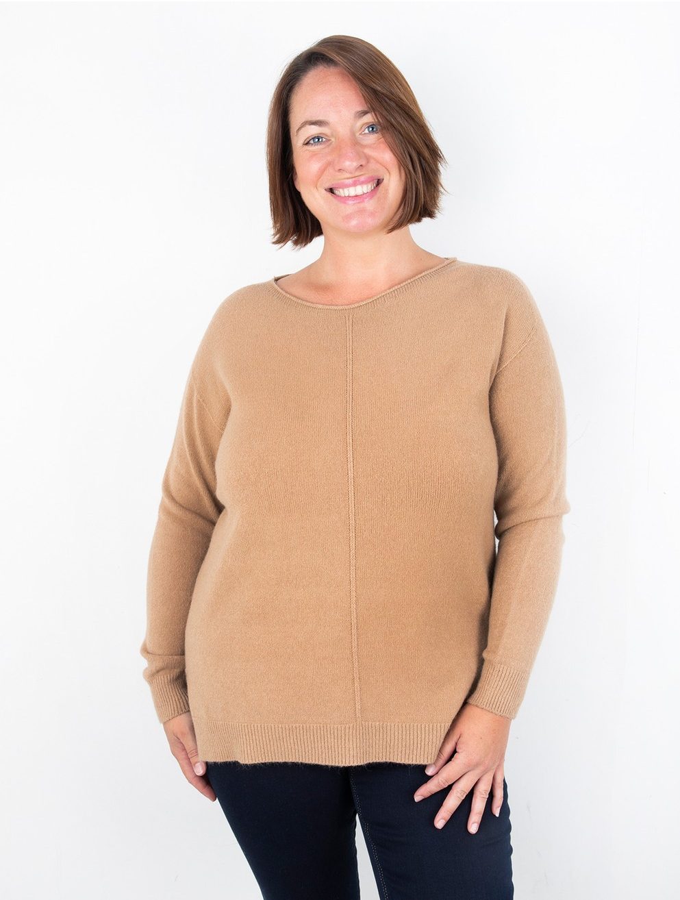 The Maggie Seam Front Supersoft Jumper typically fits sizes UK8-16 and is made in Italy from a supersoft cloud knit. Falling slightly longer at the back and boasting a seam detail down the front, this is a simple and classic yet chic design.